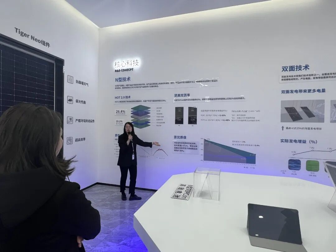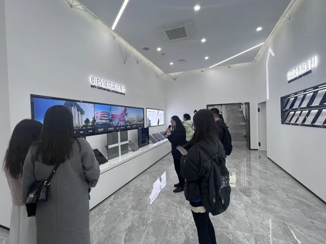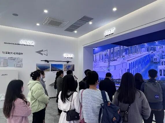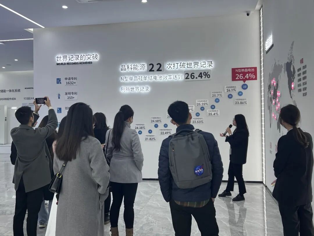 在电池多功能展厅中,同学们了解了晶科能源的发展历程、业务体系、专利研发等。晶科践行“以客户为中心,以贡献者为本,持续对标创新,坚持务实笃行”的核心价值观,致力为全球客户提供高效、可靠和清洁的产品,积极推动“碳中和”愿景的实现。