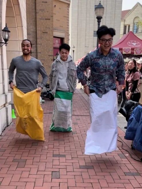 印尼摊位上有印尼学生用炼乳、奶酪和蒸玉米制作的小吃“Jasuke”,也可以来试试印尼小游戏“Balap Karung”:2-3个学生一起跳麻袋比赛,速度最快者将获得印尼著名的糖果棒 "Bengbeng"奖励!如果想感受彩绘,还可以让印尼学生帮你在手或脸颊画上印尼国旗。
