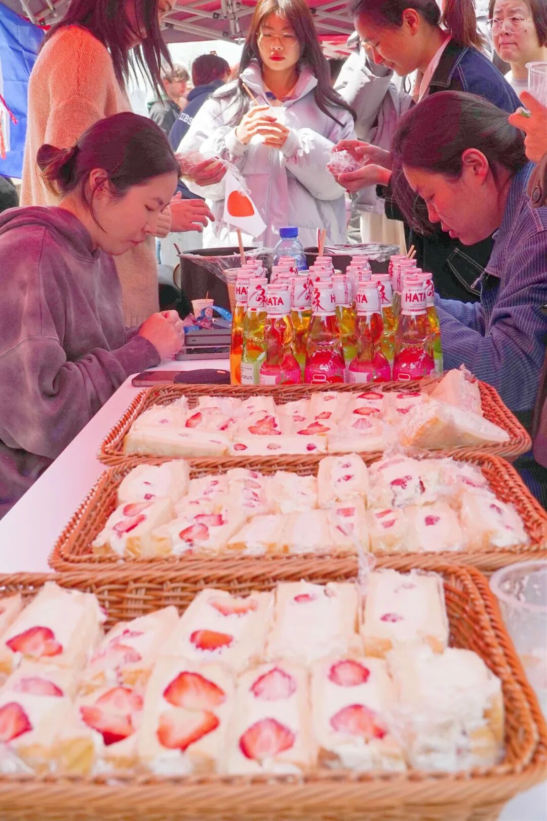 展位上摆放着奶油草莓三明治、弹珠汽水,想要带走却不简单——必须和日本学生在奥赛罗棋一决高下,赢得比赛才可以获得噢!此外,也可以尝试学习制作日式手握饭团,品尝自己的手艺。