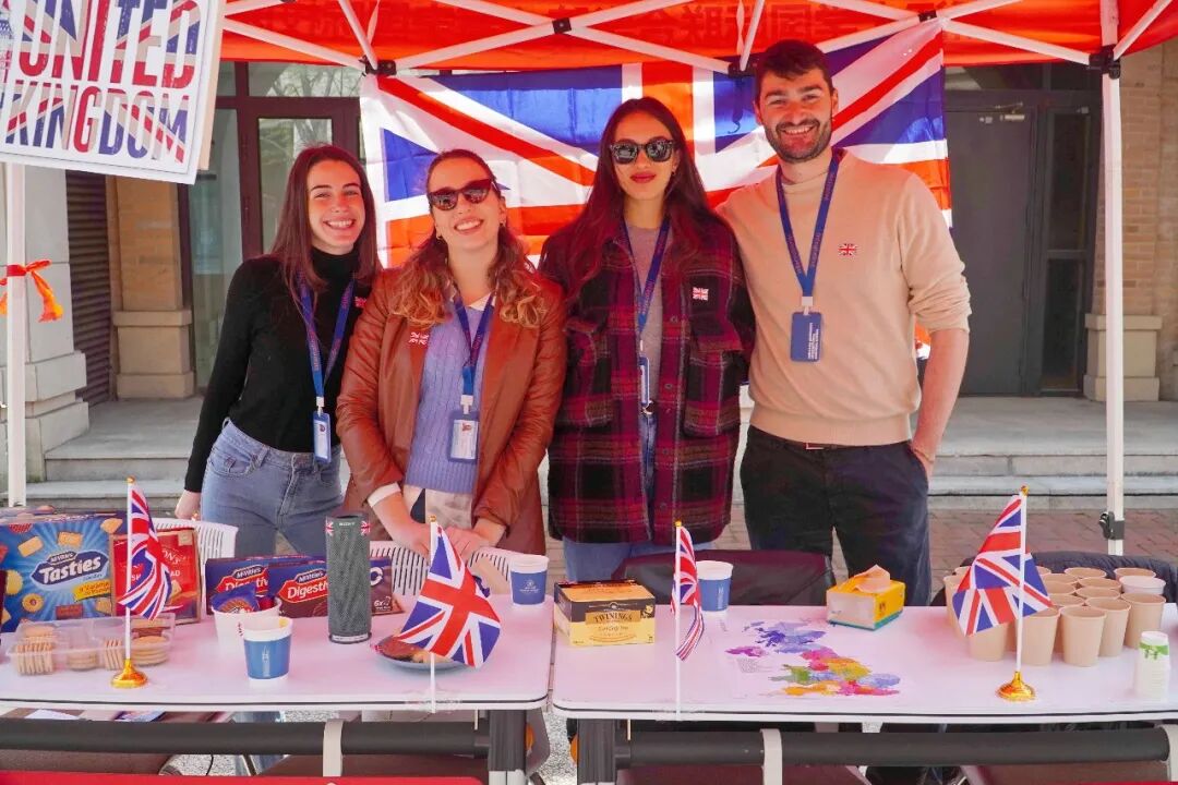 英国学生们在展位准备了伯爵茶、黄油饼干,你可以坐下享受“简易版”英式下午茶,听几首Beatles,和他们一起聊聊英格兰、威尔士和苏格兰不同的风土人情。